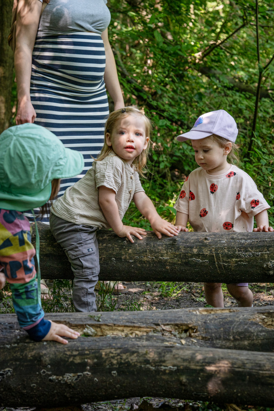 Als Pikler-SpielRaum-Leiterin habe ich lange überlegt, für Kinder ab 2 Jahren auch einen Hengstenberg-BewegungsRaum anzubieten; seine einfallsreichen Bewegungselemente fordern zum Klettern und Balancieren auf. Bis mir eines Tages auffiel, dass der Wald genau dasselbe macht. Er ist eine ideale Fortsetzung des Pikler SpielRaumes, er fordert die Kinder zum Erforschen und Ausprobieren auf.